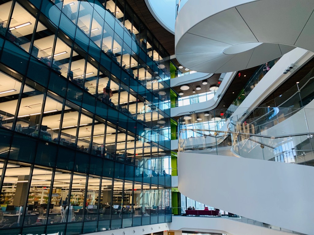 For the Northeastern University segment of the social media photography assignment, I used the incredible architecture of ISEC to serve as the setting of my photo. The inspiration struck when I was studying on the second floor and looking down at the first floor, as I observed the multi functionality of the building. Some were studying, some were attending lectures, and some were sipping coffee at the Italian cafe on the first floor. In front of me, students were using the open kitchen to heat up burritos and make themselves lunch. In my photo, tried to portray the stunning architecture of Northeastern’s newest building.