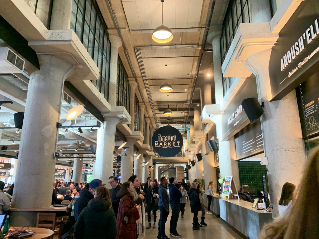 For the third and final segment of the photography assignment, I chose the Time Out Market as my news topic. The Time Out Market, located in Fenway, is an indoor food market featuring an array of worldly cuisines including: Italian, Mediterranean, Japanese, and American. The market has a similar to vibe to a European food market and has proven to be a local hit, particularly on weekends. Seating is not limited, but the open tables do fill up quickly. On MLK day, dozens were gathered alongside the food vendors waiting for seats to open up, as the crowd had outnumbered the maximum seating capacity.